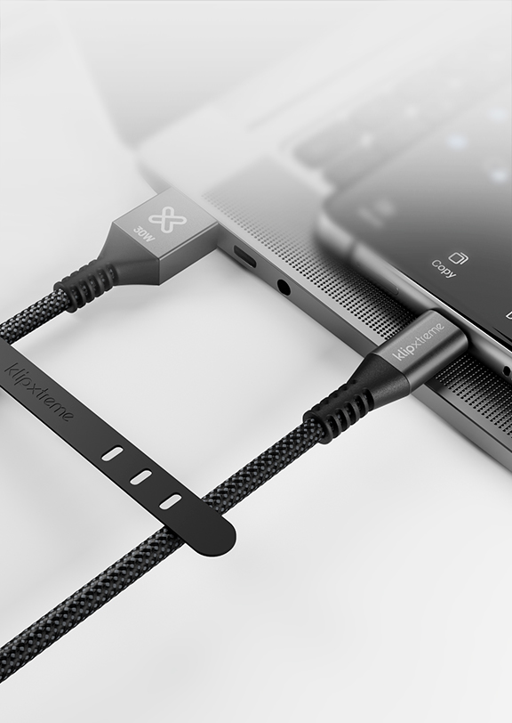 Klip Xtreme – USB cable – 24 pin USB-C – 9 pin USB Type A – 1.8 m – Black – 30W Braided Fast charging