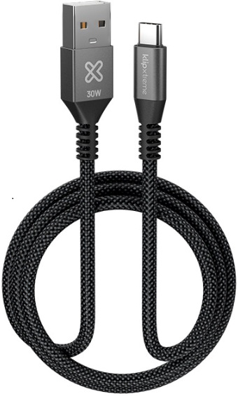 Klip Xtreme – USB cable – 24 pin USB-C – 9 pin USB Type A – 1 m – Black – 30W Braided Fast charging
