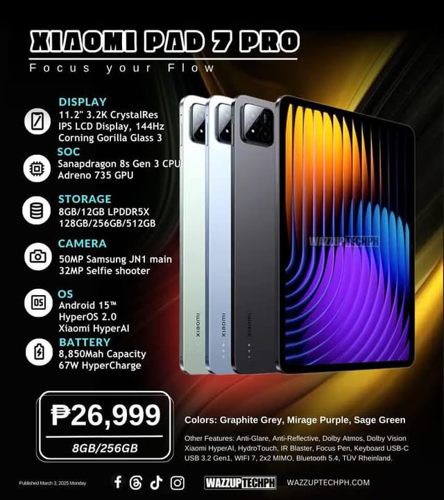 Xiaomi – Pad 7 Pro – 11.2″ – Android 15 – Snapdragon 8s Gen 3 – 8 GB – 256 GB – Gris – + Keyboard + Pen